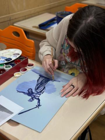 В рамках Проекта Российской академии образования "Мы наследники Победы! Помним, гордимся!", посвященного 80-летию Победы в Великой Отечественной войне, в нашей школе состоялся мастер-класс директора детской художественной школы при Художественно-графическом отделении ИИИ МПГУ (Москва) - Путковой Татьяны Ильиничны. С учениками школы она провела мастер-класс "Меч Победы», рассказав ученикам о триптихе, включающего в себя монументы: «Тыл — фронту», который установлен в Магнитогорске , «Родина-мать зовет!», расположенного в городе Волгограде и «Воин-освободитель», расположенный в Трептов-парке в Берлине . Все три скульптуры объединяет один общий элемент — Меч Победы. Ребята с удовольствием изобразили символы долгожданной Победы.