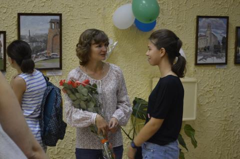 Выставку открывала директор Детской художественной школы №2 им. В.И. Сурикова и Анна Кушнарева. Художница поделилась с ребятами о впечатлении, которое произвел на нее Смоленск, о былой славе Города героя, его достопримечательностях. Замечательная была история о кремле и Арке.