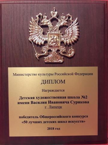 31 октября 2018г. состоялось торжественное вручение Диплома победителя Общероссийского конкурса "50 лучших детских школ искусств" в Москве от Министерства культуры Российской Федерации. На церемонию ездила директор школы Кошеляева Ирина Семеновна, которая возглавляет школу с 2002 года и подняла её на такой высокий уровень вместе со своим коллективом. Награждение состоялось в здании ГЕЛИКОН-ОПЕРА музыкального театра. Мы гордимся ВЫСОКОЙ победой!!!!!