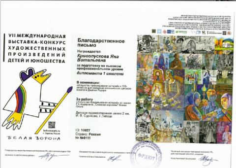 Учащиеся ДХШ №2 им. В.И. Сурикова стали победителями Международного конкурса "Белая ворона"