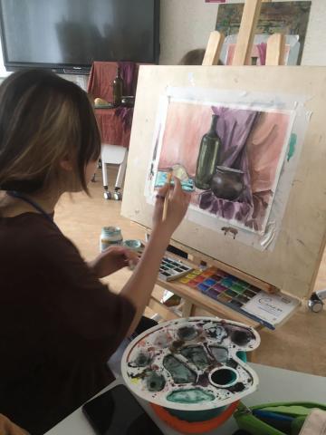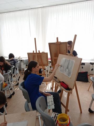 В Центре поддержки одаренных детей «Стратегия» с 11 по 23 апреля проходит Интенсивная образовательная программа в формате профильной смены по живописи для учащихся 6-10 классов. Ребята углубляют знания в живописи и оттачивают акварельную технику. Программа построена на принципе наглядности обучения, при параллельном выполнении заданий художником-педагогом и учениками одновременно с целью развития у обучающихся умения «цельно видеть» и выполнять учебные задания от простых отдельных предметов до сложных натюрмортов. Освоение этого курса позволяет всем учащимся создавать красивые и правдивые живописные работы, развивая «твёрдость руки» и «точность глазомера». Цель смены - овладение способами художественной грамотности при интенсивном обучении изобразительному искусству и использование приобретенных знаний и умений в практической художественной деятельности. От нашей школы прошли отбор 4 обучающихся: Ногина Валерия, Плешивова Полина, Халилова Наида и Бахаева Мария.