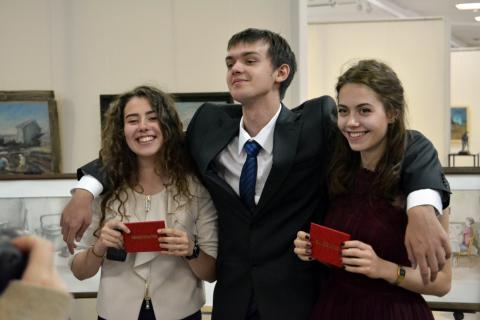 65выпускников получили документы об окончании художественной. Среди 44-х выпускников 4-ых классов 28 учеников получили красные свидетельства и 16 учеников– синие, среди них 6 выпускников окончили школу с 1 четверкой. Двадцати одному выпускнику 5-го класса вручили вкладыши к уже имеющимся свидетельствам.