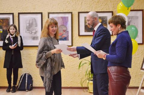 21 апреля в Выставочном зале Детской художественной школы №2 им. В.И. Сурикова г. Липецка состоялось торжественное открытие выставки и награждение победителей VII Всероссийского конкурса «Традиции» академического рисунка и живописи натурного рисования для ДХШ и ДШИ. Почетный гость, председатель Департамента культуры администрации города Липецка Малько Сергей Васильевич и руководитель проекта Кошеляева Ирина Семеновна наградили юных художников из Липецка, Ельца и Мичуринска, занявших призовые и поощрительные места в конкурсе. Ребята получили дипломы, почетные медали и памятные сувениры. Не обошли вниманием и преподавателей, педагогам, подготовившим победителей, вручили благодарственные письма. Ребятам, победившим в конкурсе, из других городов России грамоты, дипломы, медали и призы организаторы отправят почтой.